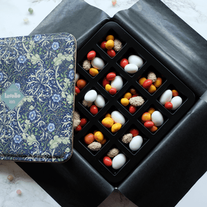Cinnamon, saffron, hazelnuts, almonds, pistachios and a selection of other fine flavours from East and West combine playfully within a delicate sweet shell to create the perfect after dinner treat.