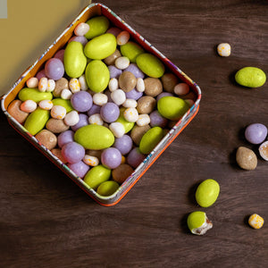 These lovingly treated roses, violets, lemons, almonds and ginger pieces were never meant to be for you. But here they are, wrapped in a delicate sweet shell and begging to be eaten. So what are you going to do? Quick, before you change your mind.