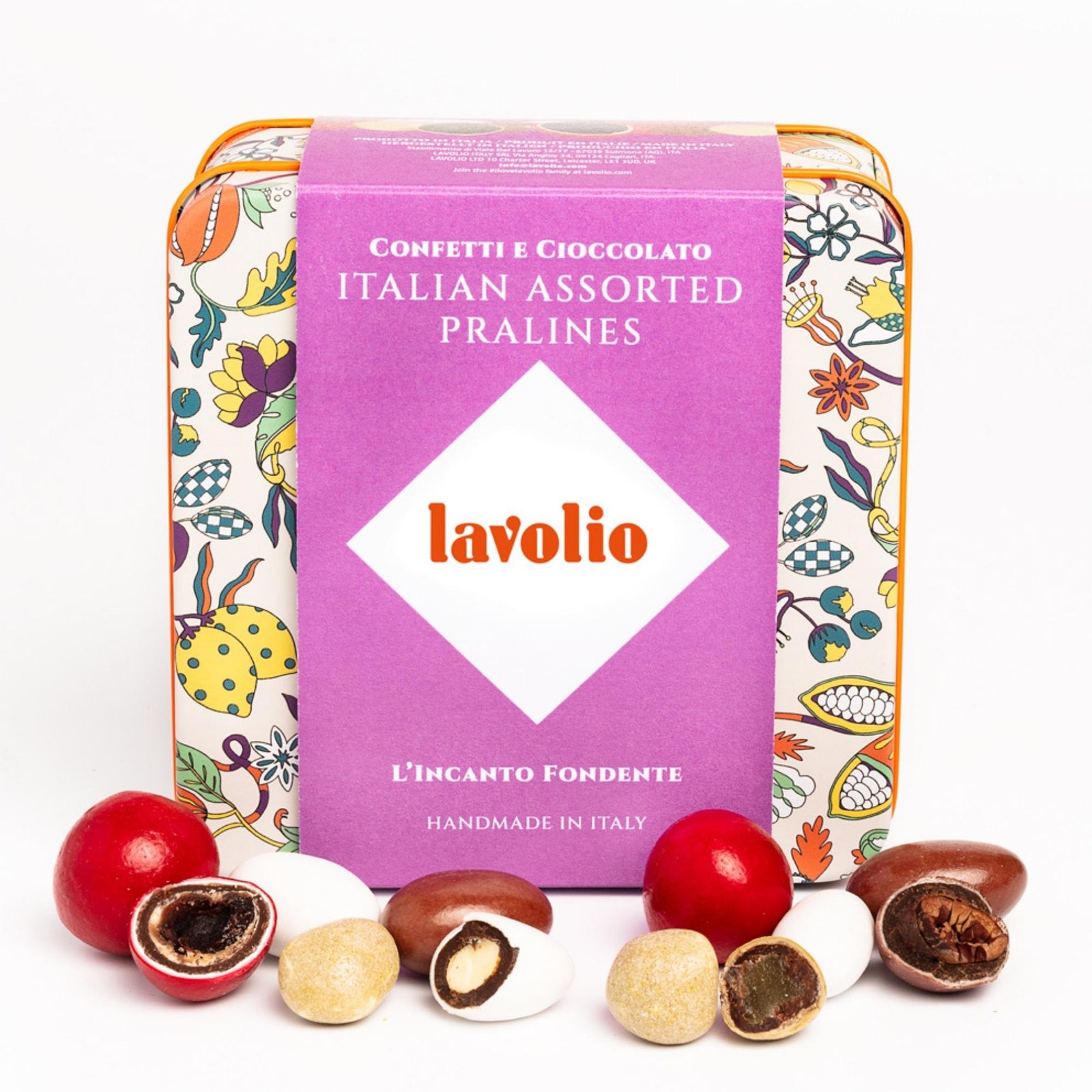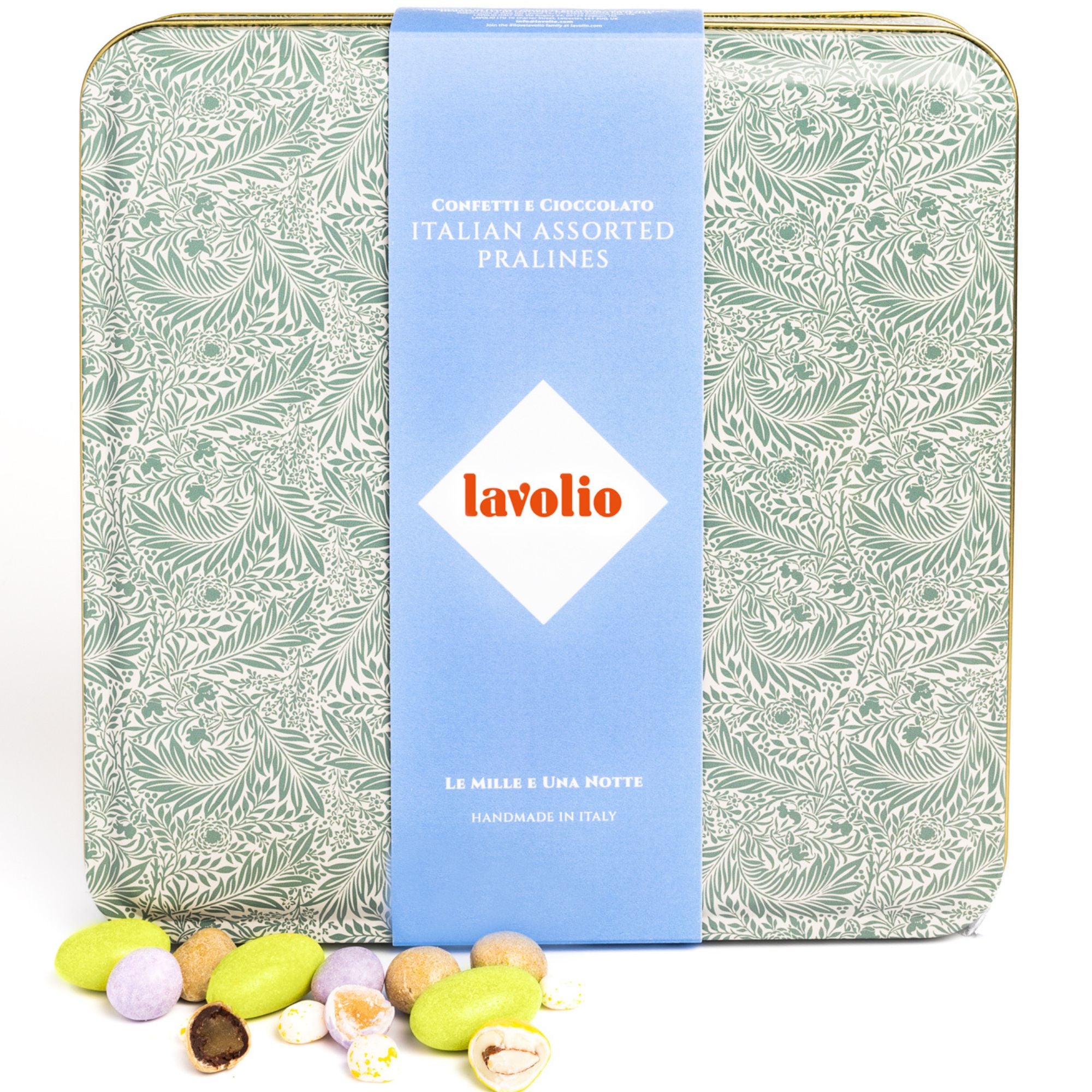 Real pieces of fruit, nuts, and jellies wrapped in chocolate and spices. Each Lavolio sweet has a delicate sugar-spun shell hand made in the old-fashioned way.